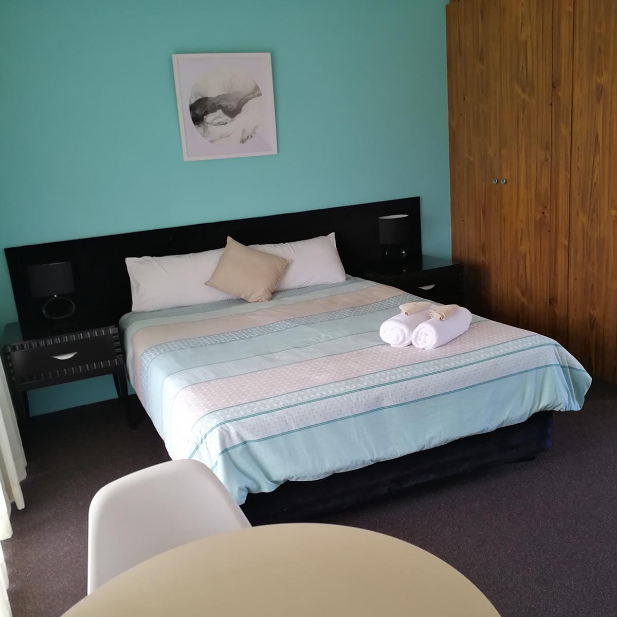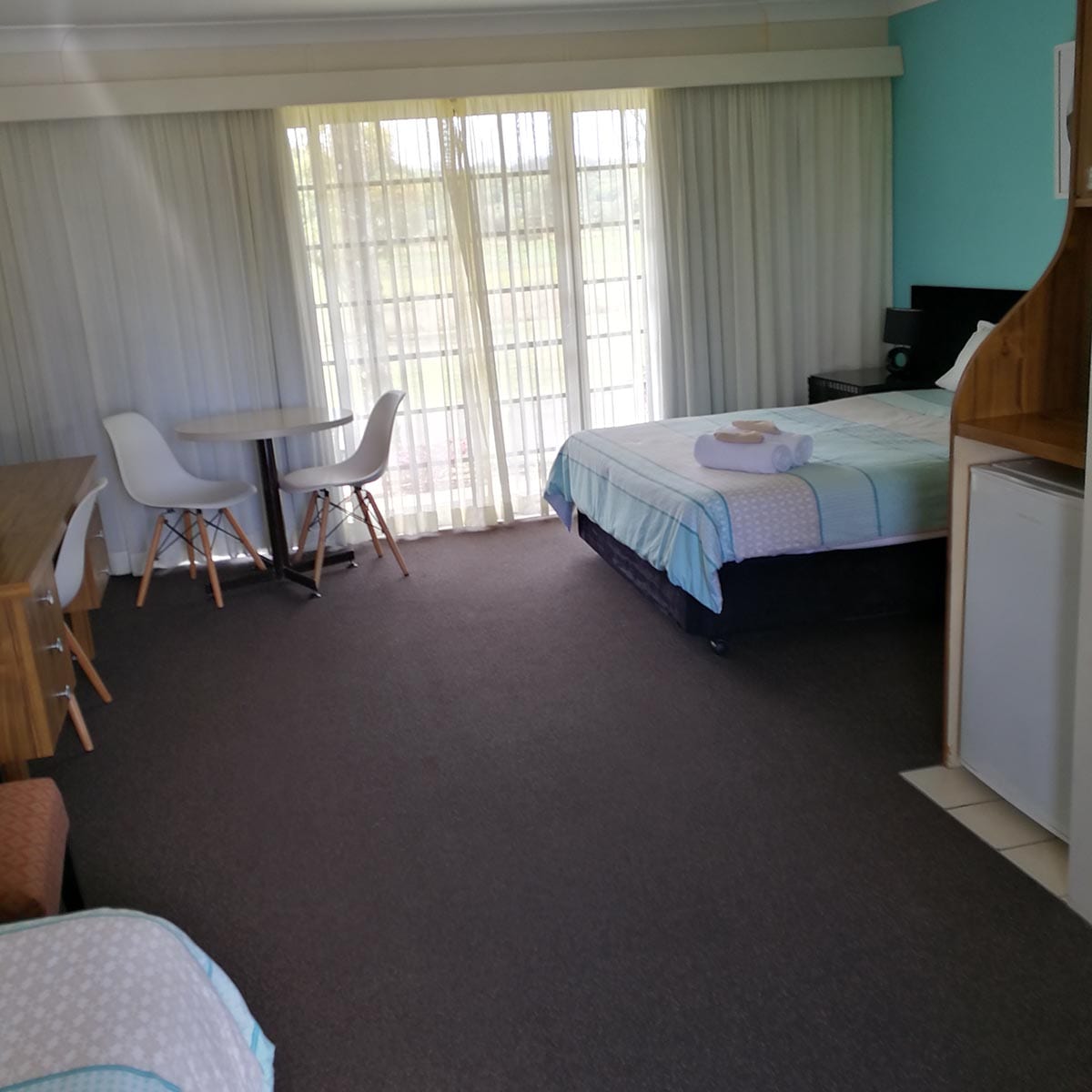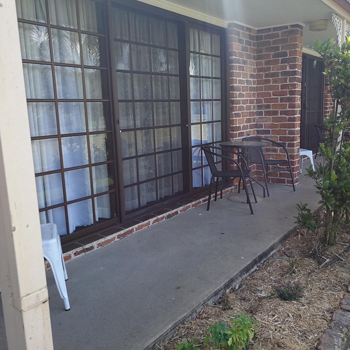 Air-conditioned room with queen bed, single bed and bunks, wifi, dining area, tea and coffee facilities, toaster, microwave, in room safe, ensuite with amenities and private terrace. Basic cutlery and plates.